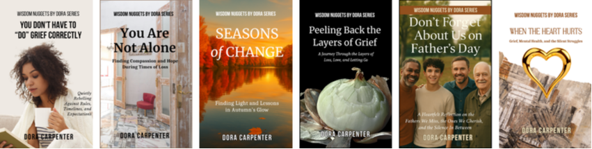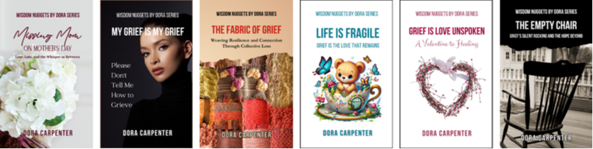 "Wisdom Nuggets By Dora" is a heartfelt series by Dora Carpenter, dedicated to providing compassionate insights on navigating life's most challenging moments, especially those related to grief and loss. Drawing on decades of experience as a grief coach, author, and mentor. Referred to as the "Petite Pages Author," Dora offers short yet powerful reflections that serve as guiding lights for anyone seeking comfort, understanding, and resilience. Through her unique blend of empathy, wisdom, and practical advice, Dora helps readers transform their pain into purpose, finding strength and hope amid sorrow. Whether you're dealing with personal loss, supporting a grieving loved one, or simply searching for inspiration in difficult times, "Wisdom Nuggets By Dora" is your companion on the path to healing and growth. Visit often as this is one of her favorite retirement pasttimes.
